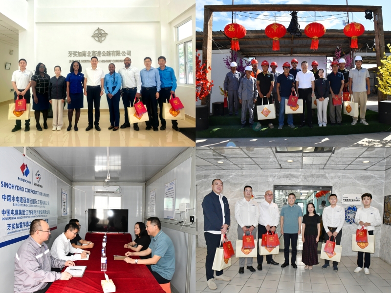 2025年1月22日、24日,王有莉参赞陪同陈道江大使走访中国港湾、南北高速、中国电建及CICC公司等在牙中资企业及项目现场,看望慰问企业员工并发放“新春暖心包”。