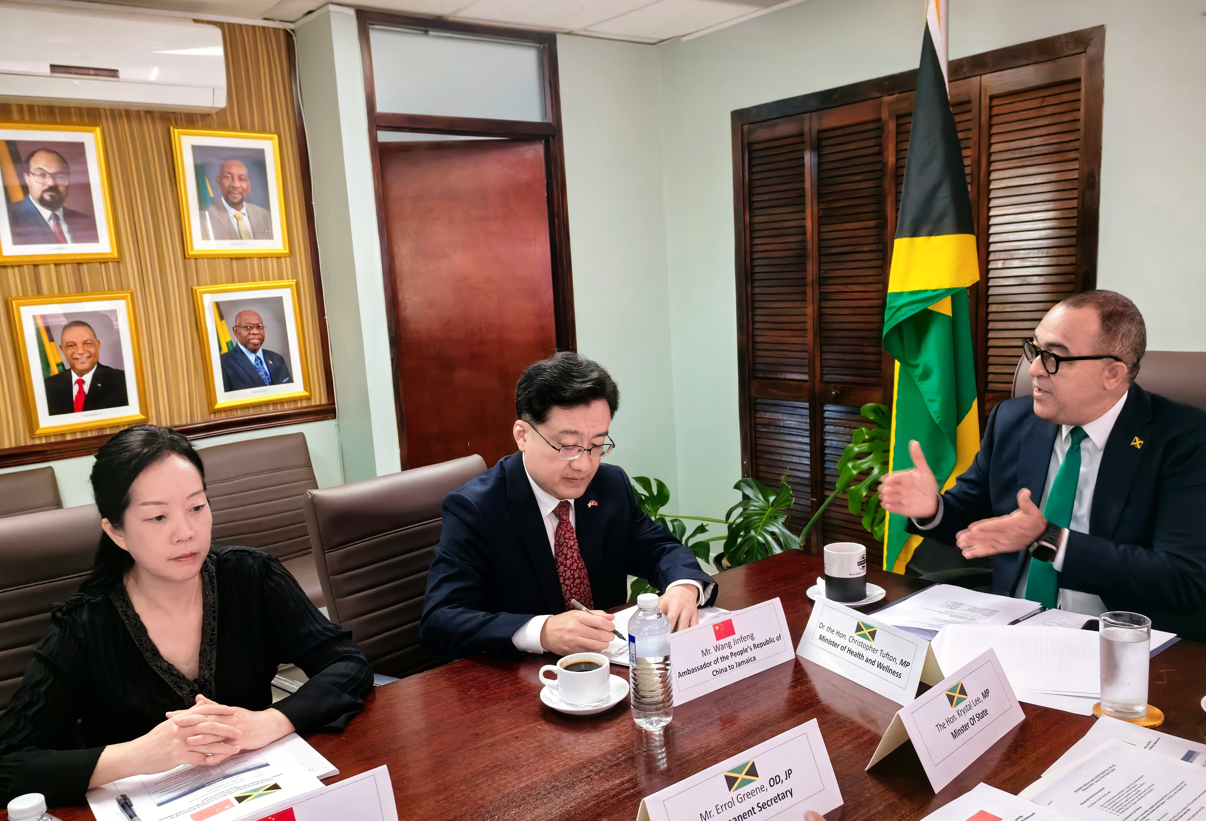 • 王有莉参赞陪同驻牙买加大使王锦峰会见牙买加卫生和健康部长塔夫顿